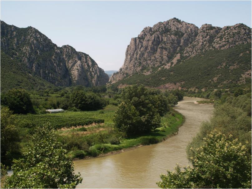 А сега малку подзастани, стој! Милувај карпи со погледот свој! Пред тебе се отвора камена врата, над неа летаат птици во јата. Оттука почнува клисурата Демир, од која в срце се чуствува немир. Градот Гевгелија е пограничен град, со нови куќи, извишен, млад. Кај него Вардар буен кон морето се движи. А таму во тој крај преубав, сјаен, во Лерин, Воден, во Солун знаен Македонци живеат како овде исто,Егејското море им е око бистро.