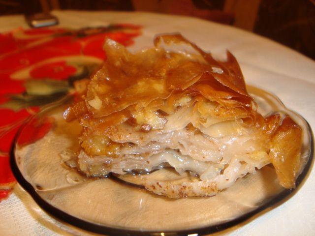Sastojci za fil dobro se mute. Kore se redaju i na svakoj se kori stavlja od fila, samo na posljednjoj ne. Prije pečenja reže se na komade. Kada se ispeče ostavi se da se ohladi i popari se vrućim šerbetom. Služi se hladna.