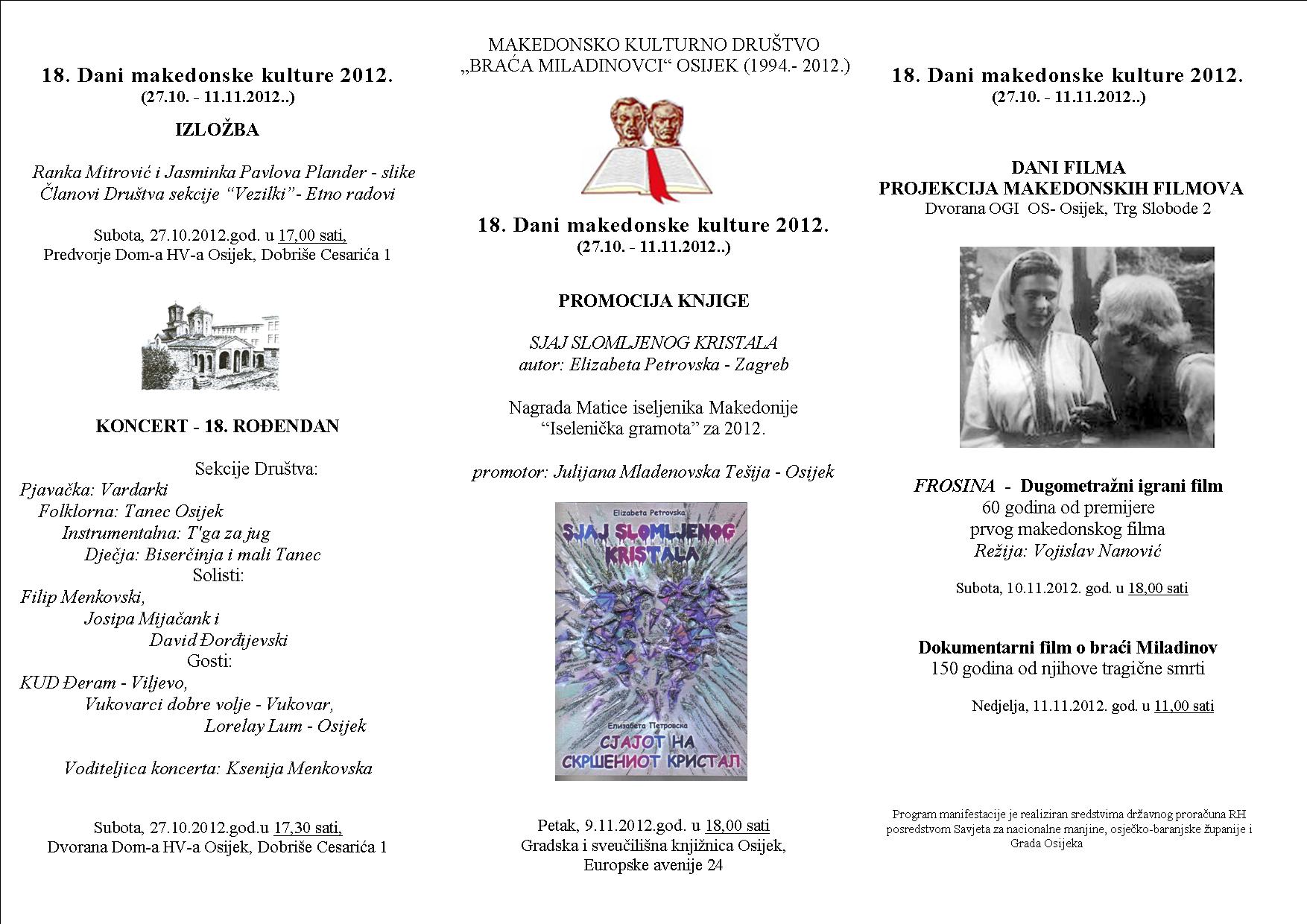 Pozivnica: “Dani makedonske kulture” u Osijeku
