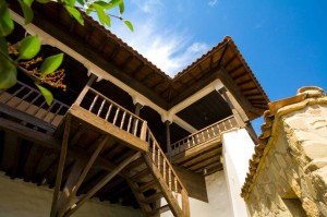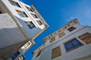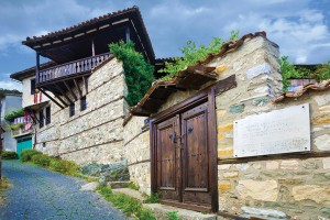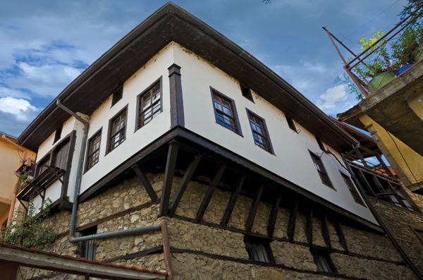 Kuće su s izbočenim nadstrešnicama, fresko dekoracijama na vijencima, specifičnim oblogama na prozorima i vratima i s trokutastim kršenjem na krovnom vijencu. Imaju po dva ulaza, iz donje se ulice ulazi u prizemlje, dok se iz gornje ulazi na katu. Obično su s visokim prizemljem i s jednim ili dva kata. Kat je erkerno i asimetrično izbočen (na široj osnovi od prizemlja), sa skrivenim i ožbukanim kosnicama. Zbog pomanjkanja prostora i uskih ulica, kuće su građene u visinu, a da uhvate svjetlo, rađene su s puno prozora. Stropovi su ukrašeni rozetama, zidovi su s prostorima za spremanje odjeće, a po podovima je bilo mindera za sjedenje. Otvoreni je čardak obično okrenut prema dvorištu, a prostorije za boravak prema ulici.