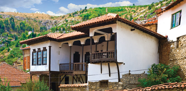 Куќите се со испуштени стреи, фреско декорации на венците, специфична опшивка на прозорците и вратите и со триаголно прекршување на покривниот венец. Имаат по два влеза, од долната улица се влегува во приземјето, додека од горната се влегува на катот. Обично се со високо приземје и со еден до два ката. Катот е еркерно и асиметрично исфрлен (на поширока основа од приземјето), со скриени и малтерисани косници. Поради немање многу простор и тесните улици, куќите се граделе во висина, а за да ја фатат светлината, се правеле многу прозорци. Таваните се украсени со розети, ѕидовите се со долапи за чување на облеката, а по подовите имало миндерлаци за седење. Отворениот чардак е обично свртен кон дворот, а просториите за домување кон улицата.