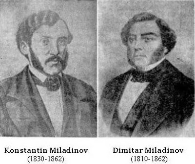 Браќата Димитар (Струга, 1810 – Цариград, 23 јануари 1862) и Константин (Струга, 1830 – Цариград, 18 јануари 1862) Миладинови, се основачи на националната преродба во Македонија од средината на 19. век. Родени се во семејство со осум деца на грнчарот Ристе и неговата сопруга Султана. Основно училиште завршиле во Струга, а гимназија во Јанина, денешна Грција. Со диплома на учители браќата се вратиле во родниот крај. Се занимаваат со собирање и запишување на македонски народни песни и други умотворби. Димитар поради судирите со гркоманите ја напушта Битола, но при крајот на 1856 година се враќа во Струга и го праќа Константин во Москва да студира словенска филологија. Подготвувајќи го Зборникот, Константин и самиот почнува да пишува поезија. Неговото поетско творештво, иако скромно (само 15 песни), го става на пиедесталот на македонската нова литература како основоположник на македонската уметничка поезија. Со песната „Т’га за југ“, која има 70 препеви на 42 јазици, секоја година се отвораат Струшките вечери на поезијата. Во 1859 година Константин заболува од туберкулоза и тргнува кон дома. Патем се среќава со хрватскиот бискуп Јосип Јурај Штросмаер кој прифаќа да го финансира печатењето на Зборникот.