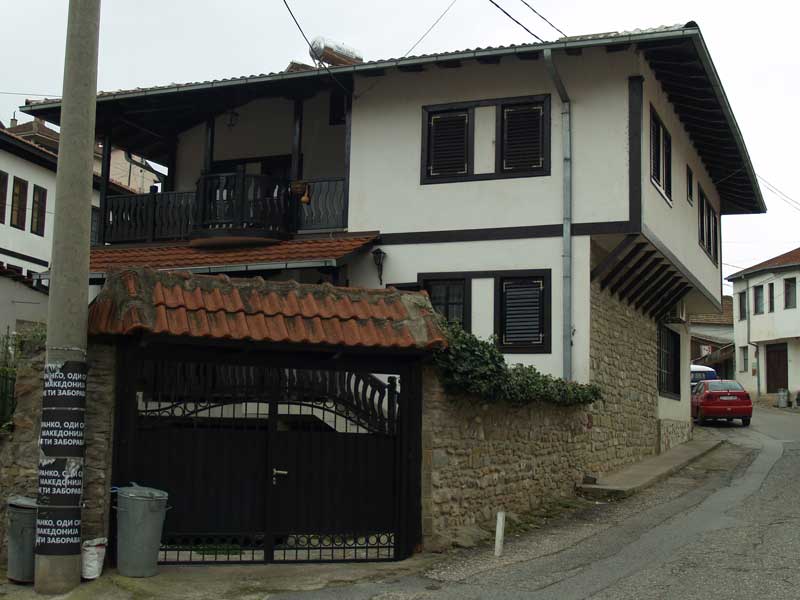Подрумите и приземјето се градени од масивен кршен камен, а катовите од дрвен скелет (бондрук) искован со штички од надворешната и внатрешната страна. Во зависност од желбите и просторните можности, хоризонталните распореди куќите се асиметрични. На распоредот на приземјето на куќата особено влијае и професијата на сопственикот, каде се сместени дуќаните или ановите. На катовите се наоѓаат просториите за живеење и гостинските соби, како и отворени или застаклени чардаци, свртени кон улицата.