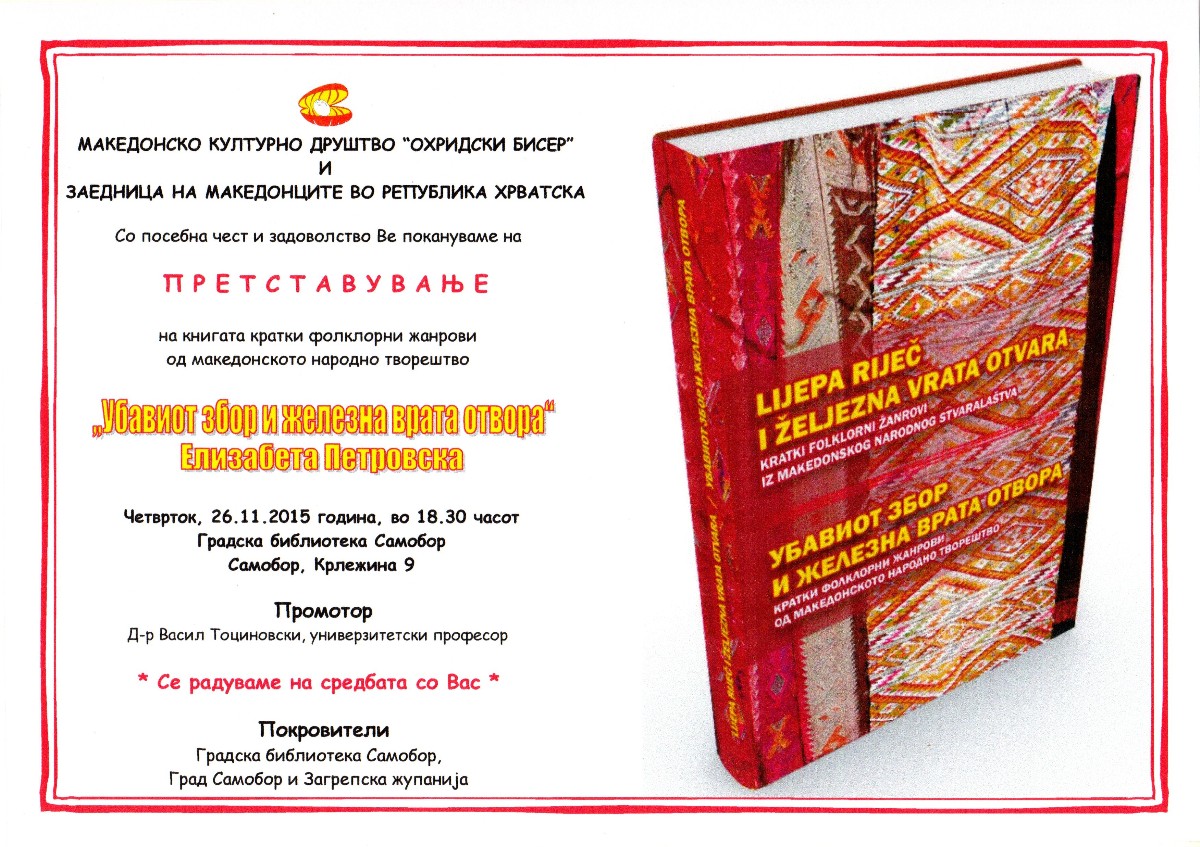 Promocija: Lijepa riječ i željezna vrata otvara – Elizabeta Petrovska epetrovska 18. studenoga 2015. POZIVNICA ZA PROMOCIJU – LIJEPA RIJEC I ZELJEZNA VRATA OTVARA