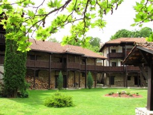 Уште однадвор, импозантниот комплекс ве кани да ги откриете неговите скриени богатства. Портата искована од масивно дрво води кон дворот каде е сместена црквата, изградена во 1345 г. Во дворот можете да им се восхитувате на прекрасните конаци распоредени како венец околу црквата. Комплексот го украсуваат и камбанерија, помала црква посветена на cв. Апостол Марко, музеј, галерија за икони, фурна, казани за печење ракија, бунар со студена вода и мошне стара воденица која е сочувана како сеќавање на времето кога житото се мелело на таков начин. Тука секој е добредојден да се помоли и да слушне убави зборови за историјата на манастирот.