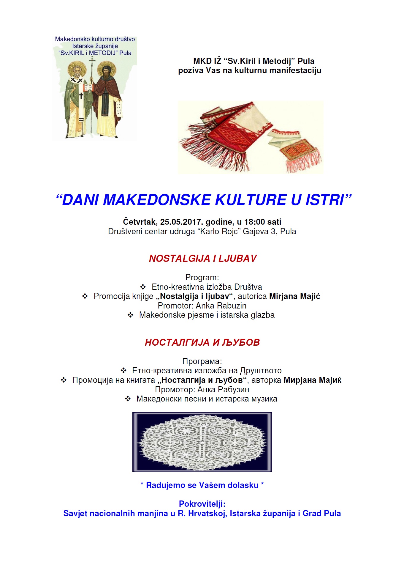 Покана: “26. Денови на македонската култура – Денови на Св. Кирил и Методиј” – Сплит