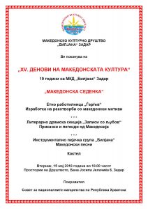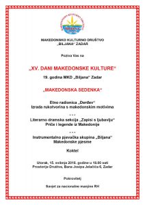 Pozivnica: Makedonska sedenka epetrovska 14. svibnja 2018. ZADAR – POZIVNICA DANI MK KULTURE 2018 SEDENKA