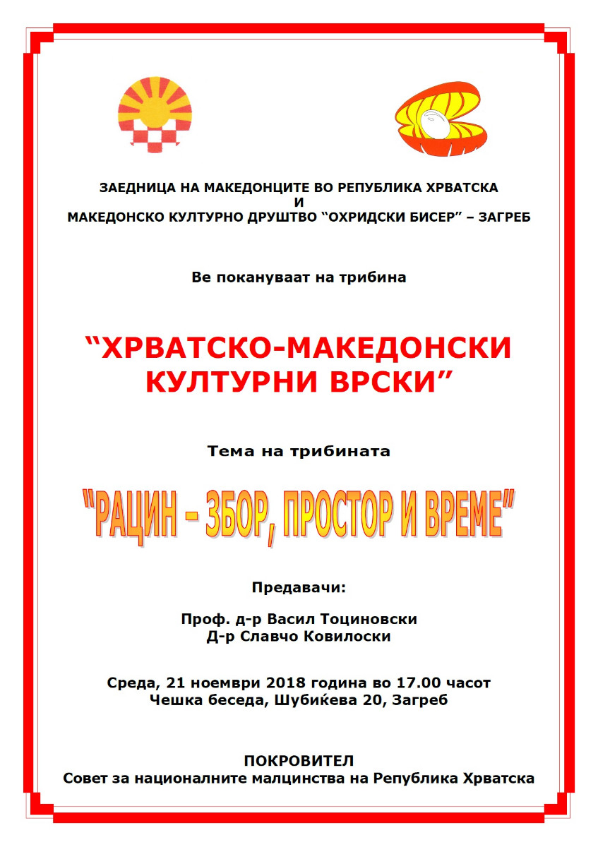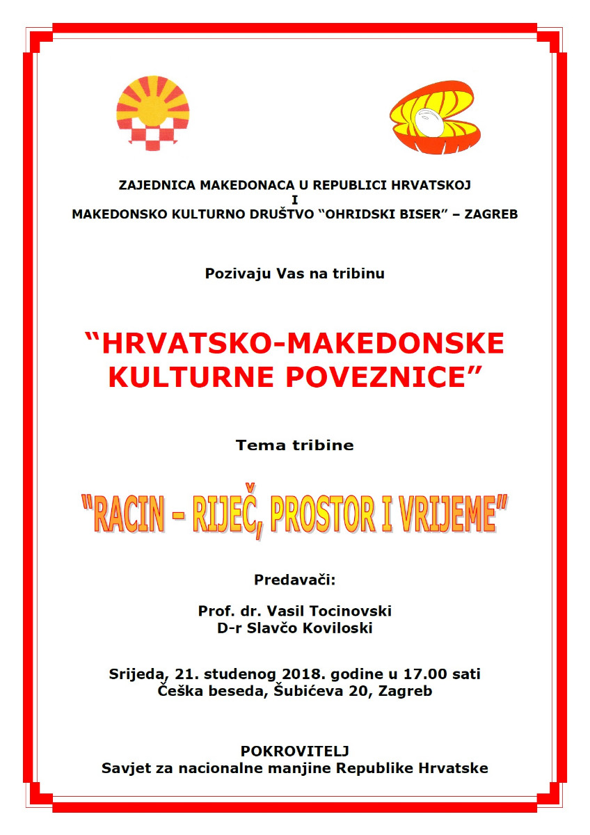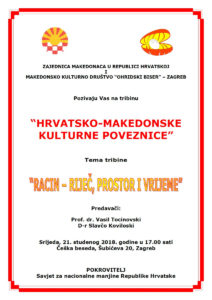 Покана: Трибина “Хрватско-македонски културни врски” во Загреб epetrovska 13. November 2018. POZIVNICA TRIBINA 2018 – ZAGREB
