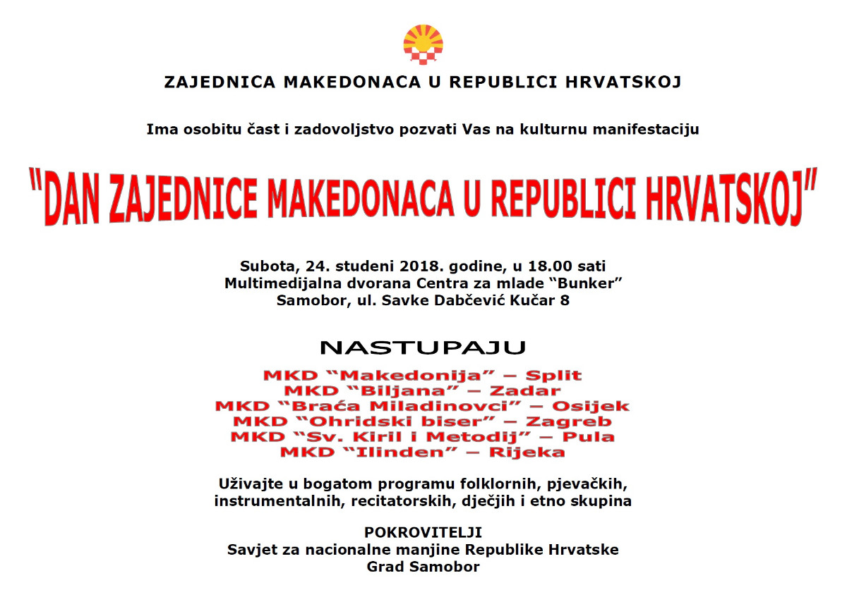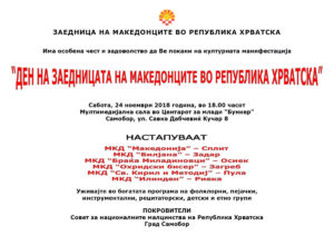 Покана: Ден на Заедницата на Македонците во РХ epetrovska 15. November 2018. POZIVNICA ZA DAN ZMRH-2018 POZIVNICA ZA DAN ZMRH-2018 PROGRAM