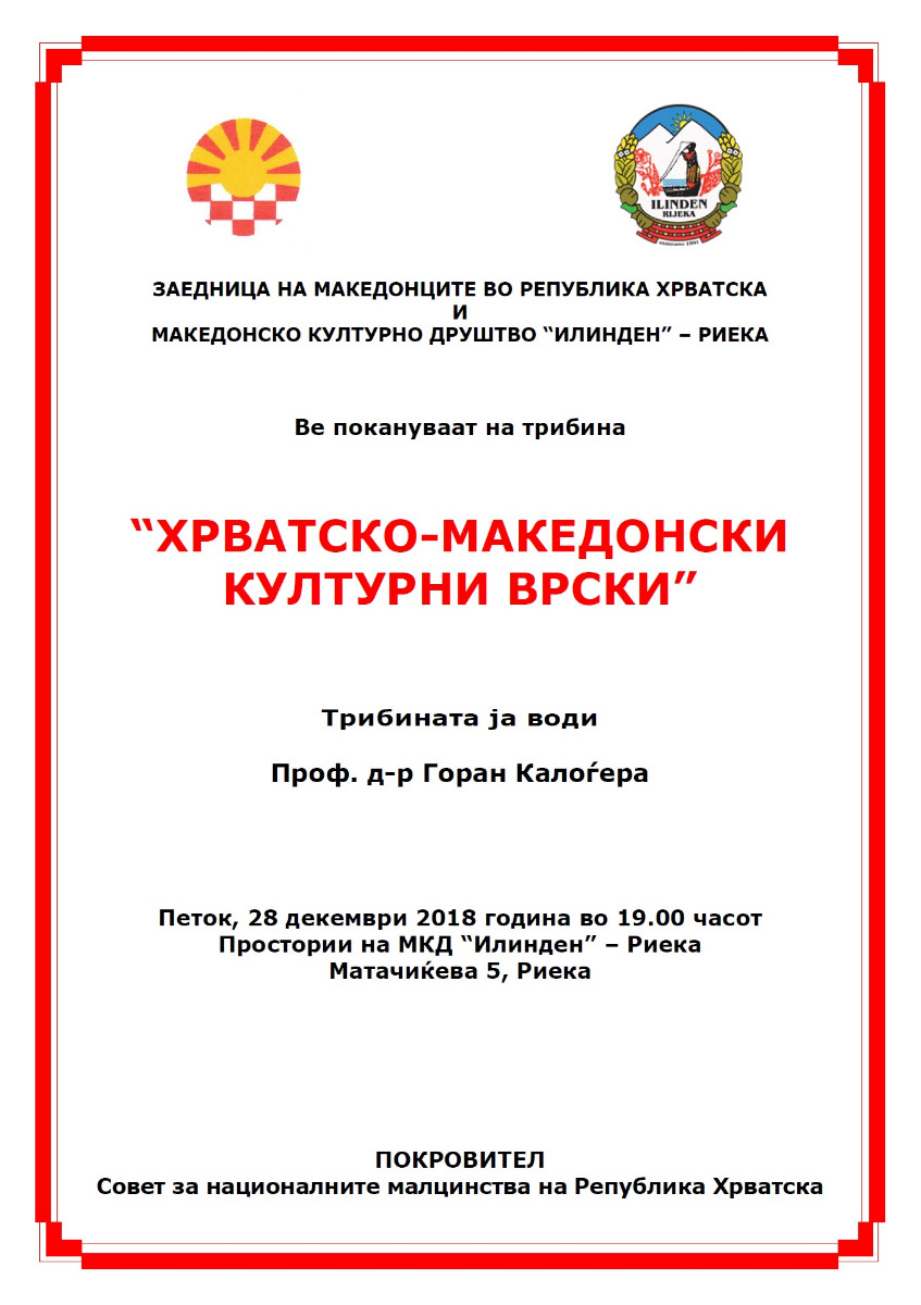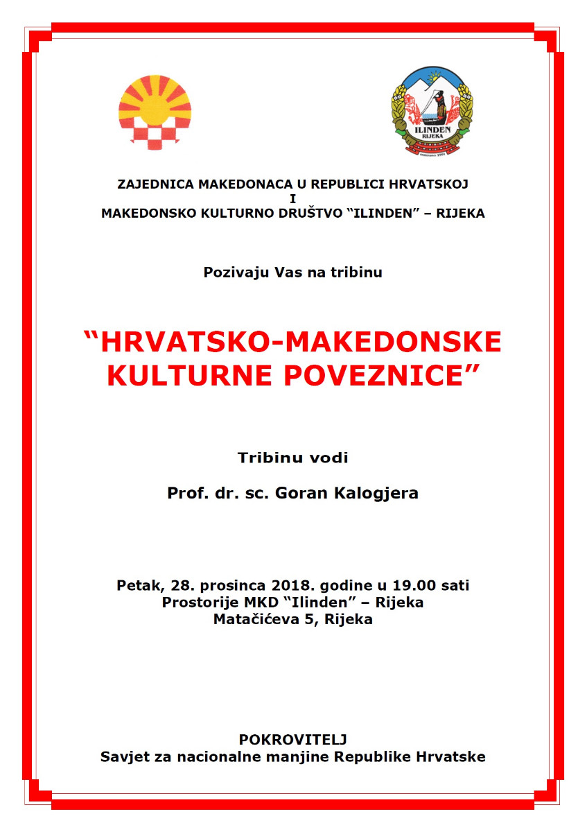 Покана: Трибина “Хрватско-македонски културни врски” во Риека epetrovska 20. December 2018. POZIVNICA TRIBINA 2018 – RIJEKA