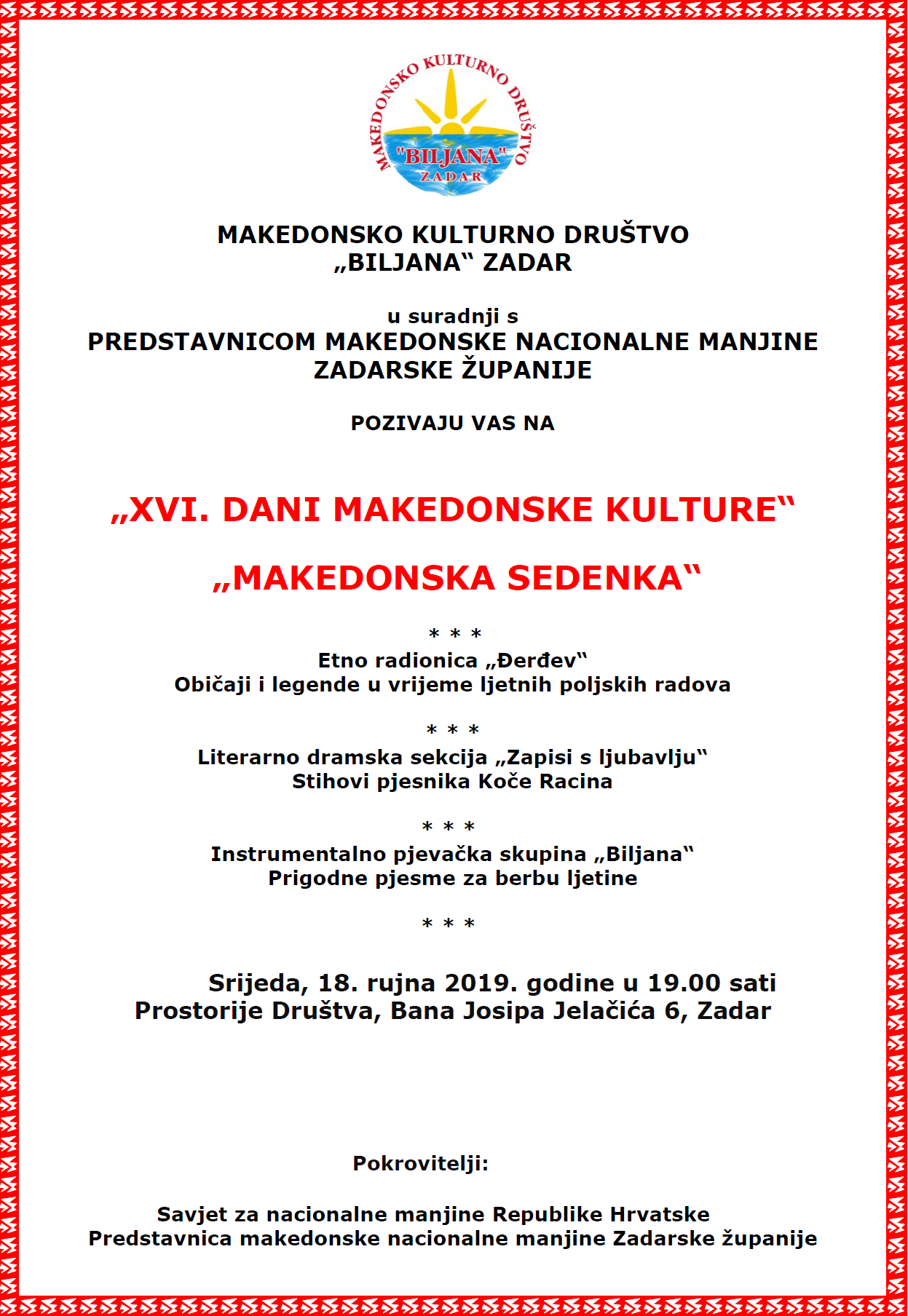 Покана: Македонско-хрватски културни вечери