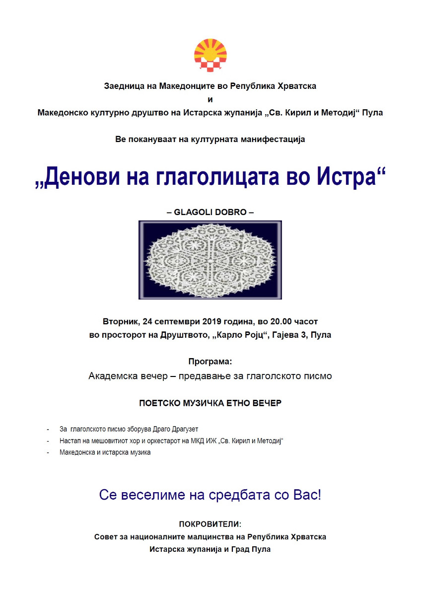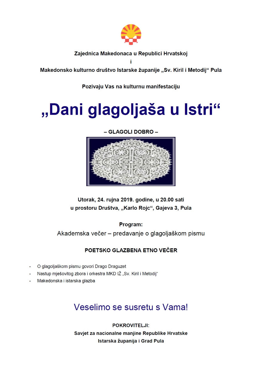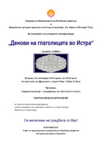 Pozivnica: Dani glagoljaša u Istri – III dio epetrovska 20. rujna 2019. Pozivnica – Dani glagoljasa u Istri 2019 – predavanje
