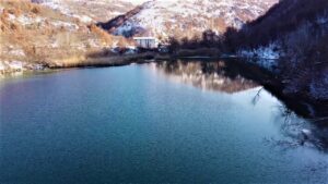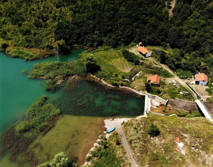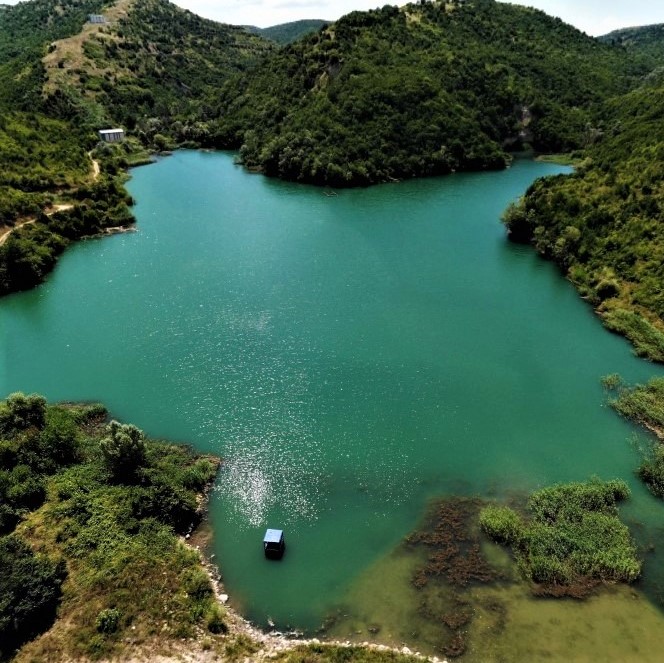 Jezero se proteže u smjeru istok-zapad, dugo je 250 m, široko 85 m, a duboko do 5 m. Zbog svog prekrasnog okruženja s brežuljcima obraslim zimzelenom i listopadnom šumom vrlo je atraktivno. Lako je dostupno, a koristi se za napajanje stoke i za rekreativni ribolov. Zahvaljujući poribljavanju, u jezeru ima različite vrste riba poput šarana, klena, jegulje, crne mrene, plašice i drugih.