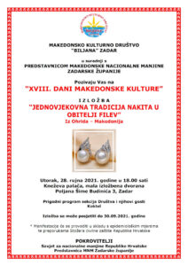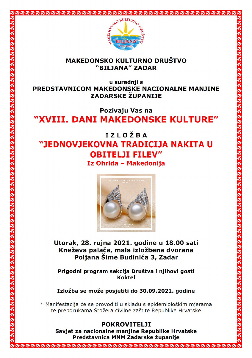 Покана: Денови на македонската култура во Задар epetrovska 24. September 2021. ZADAR – POZIVNICA DANI MK KULTURE 2021 IZLOZBA