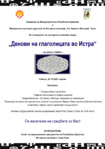 Pozivnica: Dani glagoljaša u Istri epetrovska 18. listopada 2021. Pozivnica – Dani glagoljasa u Istri 2021