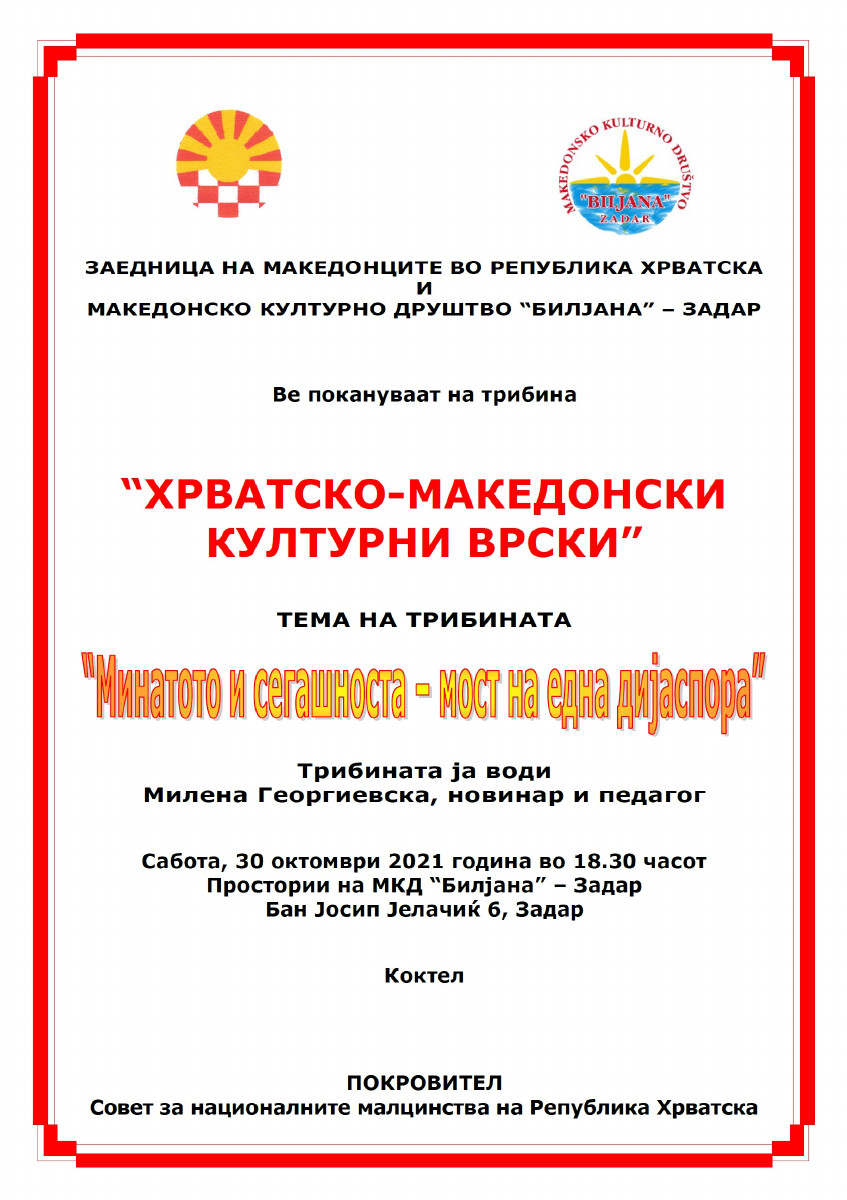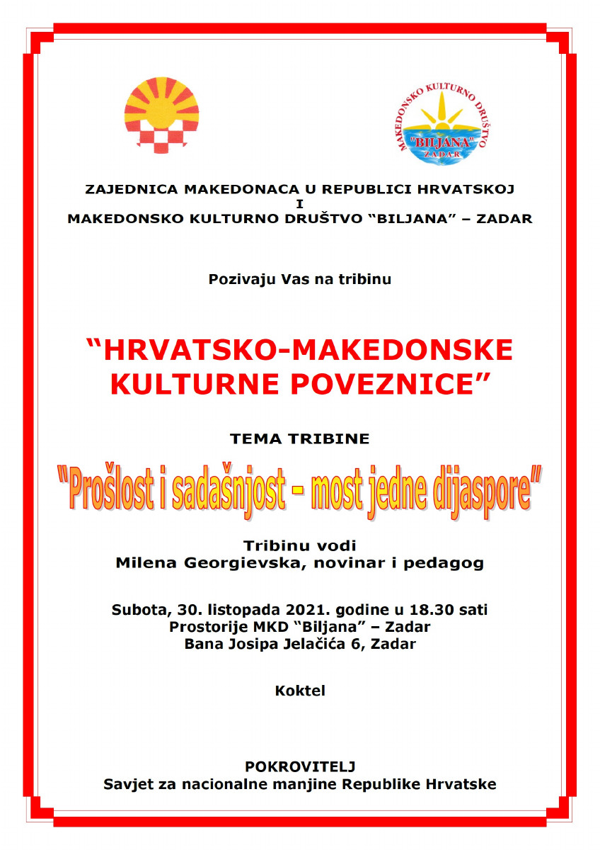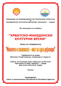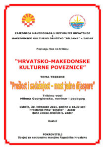 Покана: Трибина “Хрватско-македонски културни врски” во Задар epetrovska 26. October 2021. POZIVNICA TRIBINA 2021- ZADAR