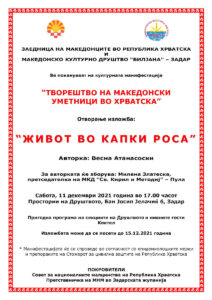 Покана: Изложба “Творештво на македонски уметници во РХ” – Задар epetrovska 7. December 2021. Pozivnica 1 – Stvaralastvo mk. umjetnika u RH