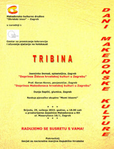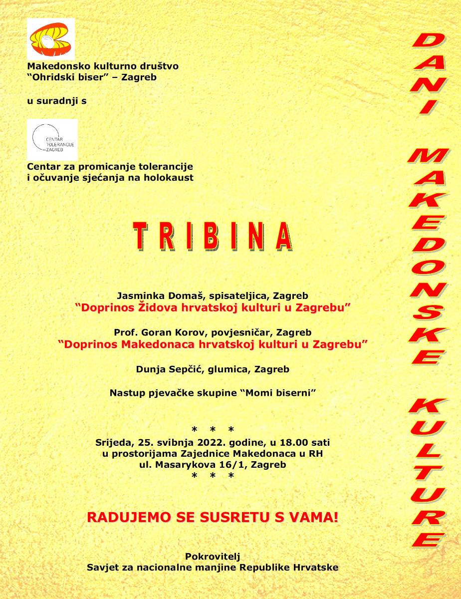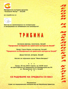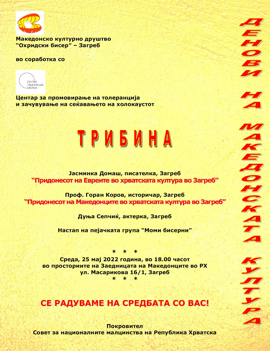 Покана: Денови на македонската култура во Загреб epetrovska 19. May 2022. Dani makedonske kulture 2022 – Tribina