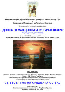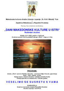 Покана: Роденденска прослава на МКД “Св. Кирил и Методиј” – Пула epetrovska 30. October 2022. Pozivnica- 2022 g Dani mk kulture – Rodjendan Drustva