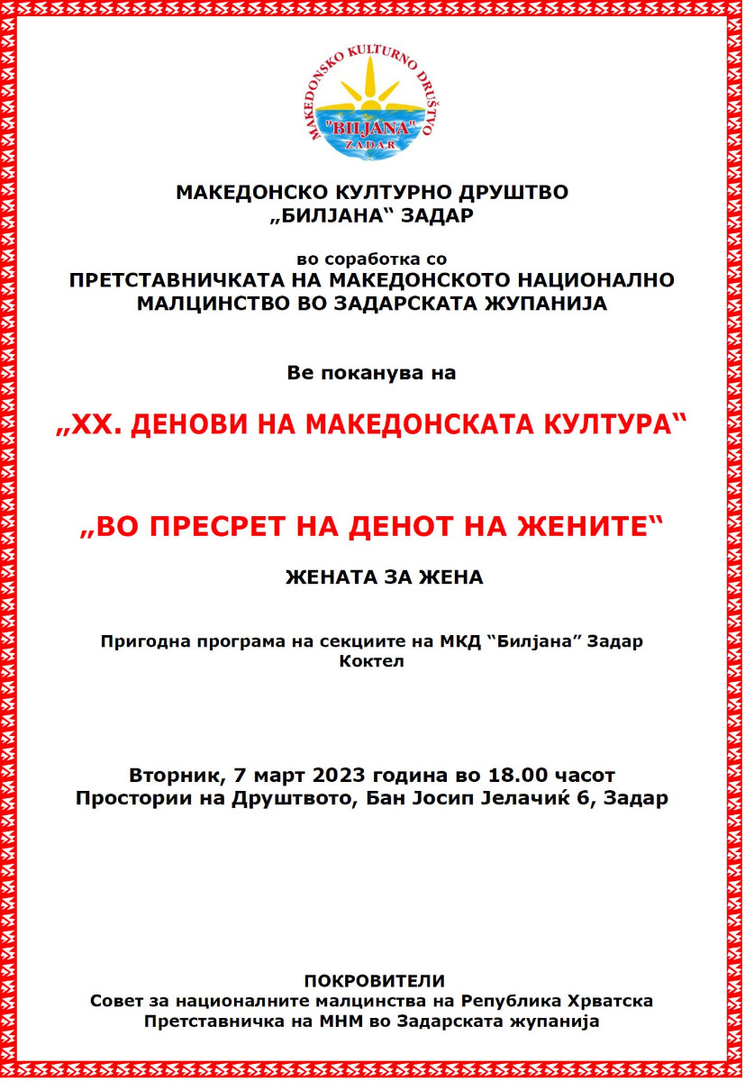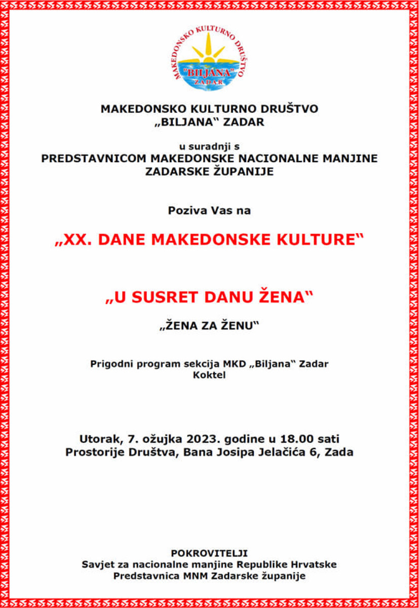 Покана: Прослава по повод Денот на жената во Задар