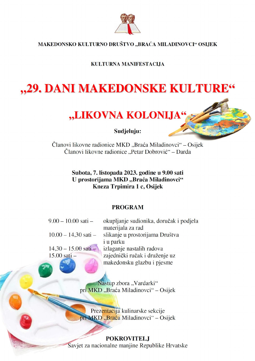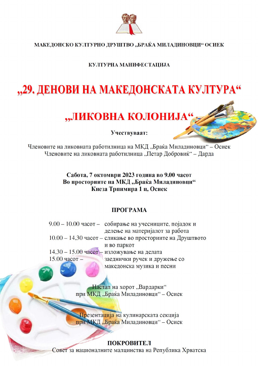 Покана: 29. Денови на македонската култура – Ликовна колонија во Осиек epetrovska 29. September 2023. 29. DANI MK KULTURE MKD OSIJEK 2023