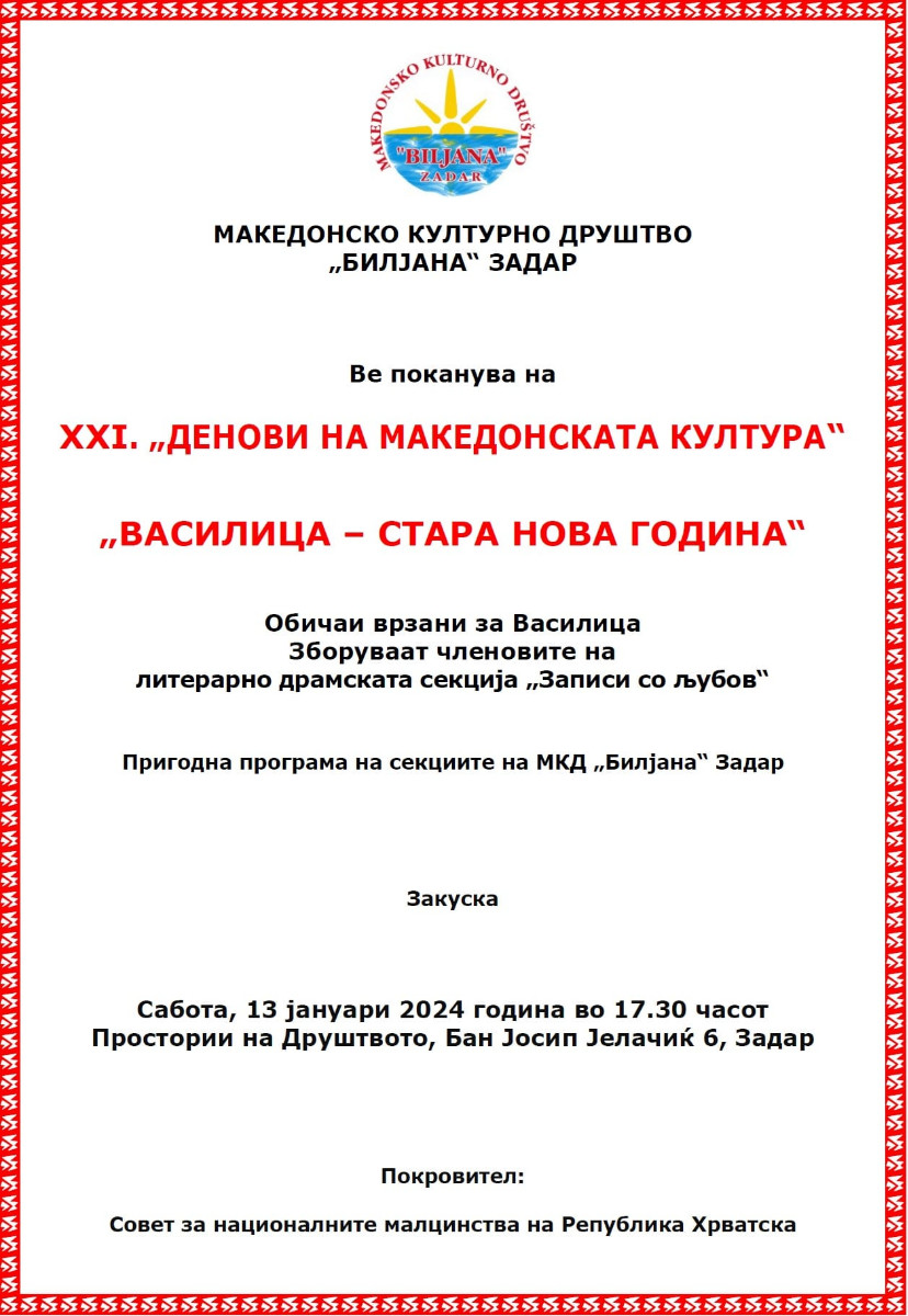 Покана: Прослава на Василица во Задар