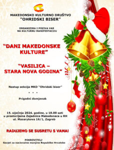 Покана: Прослава на Василица во Загреб epetrovska 9. January 2024. Dani makedonske kulture 2024 – Vasilica