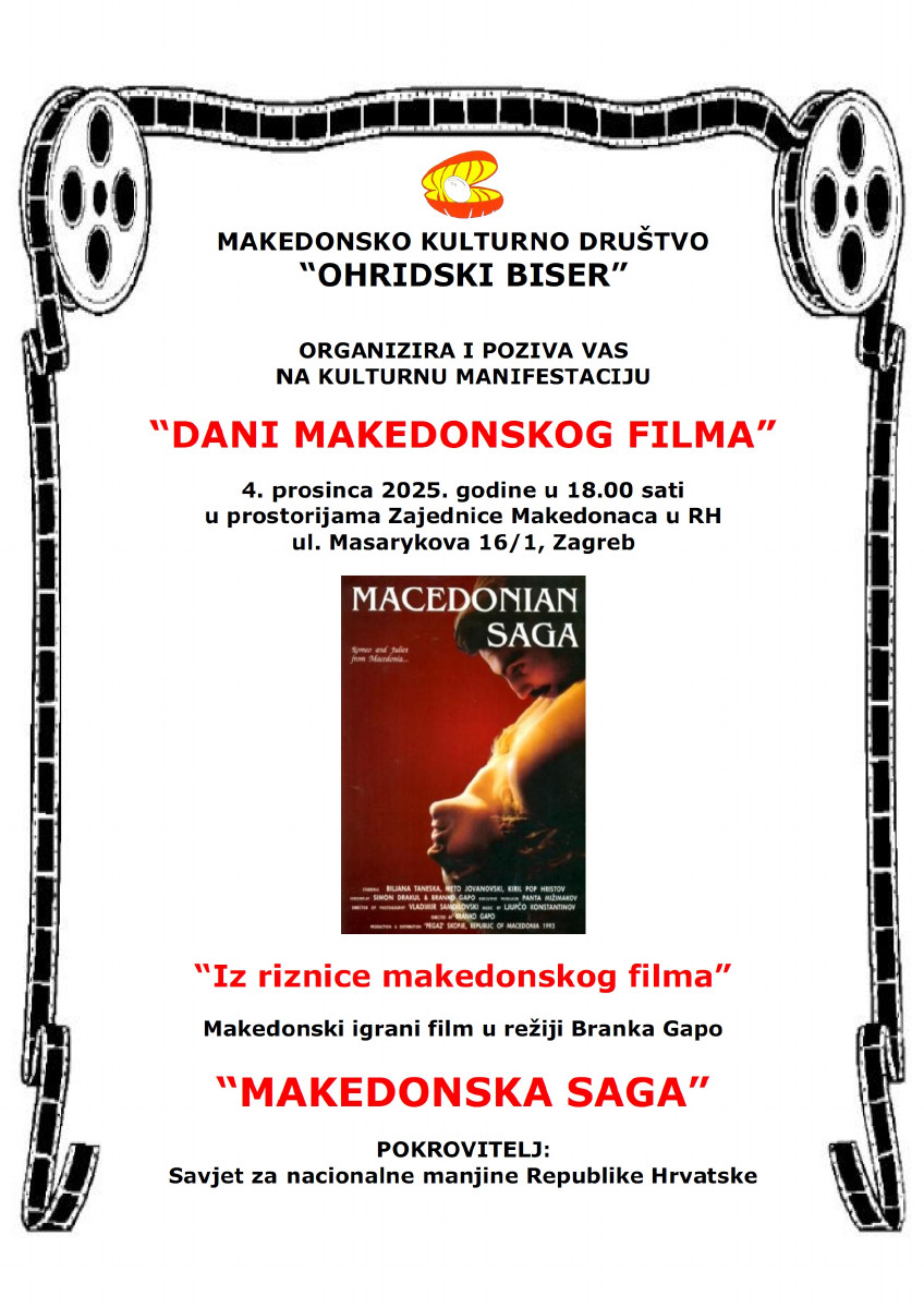 Покана: Денови на македонскиот филм во Загреб epetrovska 28. November 2025. Dani makedonskog filma 2025