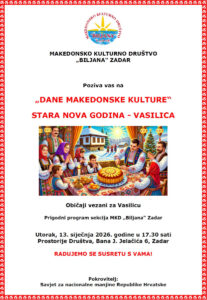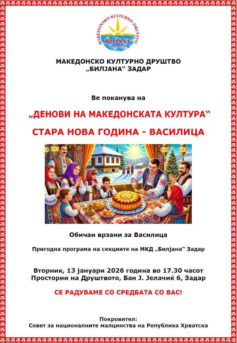 Покана: Прослава на Стара нова година во Задар epetrovska 9. January 2026. ZADAR – POZIVNICA DANI MK KULTURE 2026 STARA NOVA GODINA